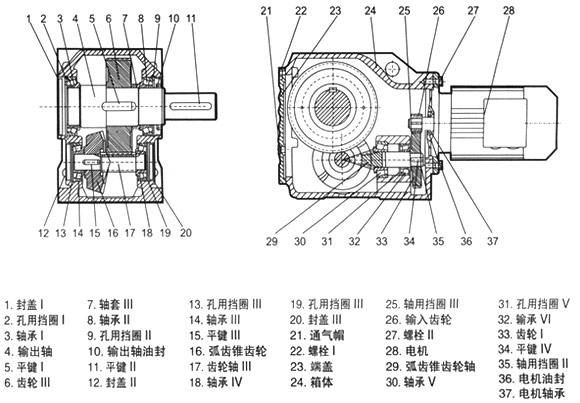 4、K斜齒輪_螺旋錐齒輪減速機振動小,噪音低,體積小,節(jié)能環(huán)保。